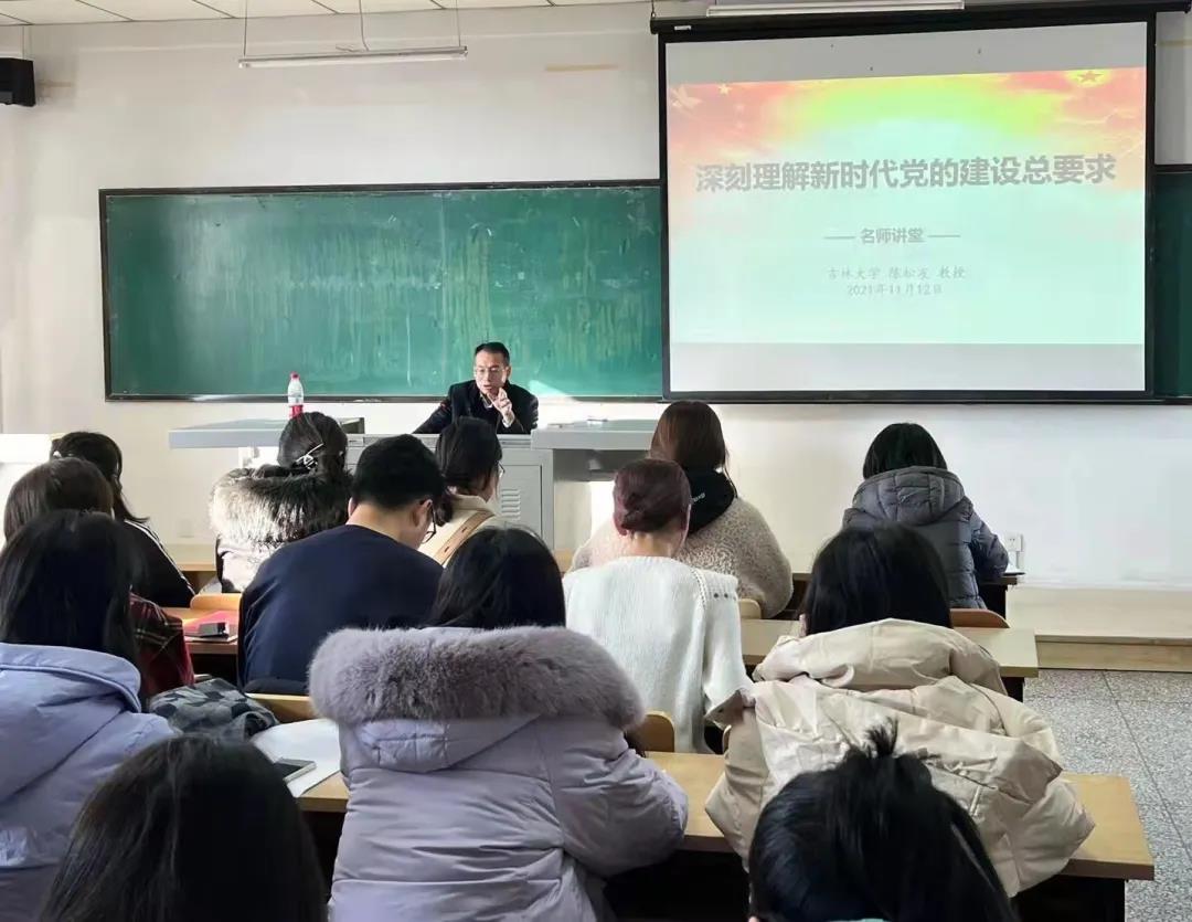 本网讯(通讯员 刘冰婕)2021年11月15日上午,吉林大学best365官方网站登录入口博士生导师陈松友教授做客best365官方网站登录入口,做了题为“深刻理解新时代党的建设总要求”的精彩学术报告。此次报告会由best365官方网站登录入口副院长王晓光主持,2020级、2021级全体研究生参加。