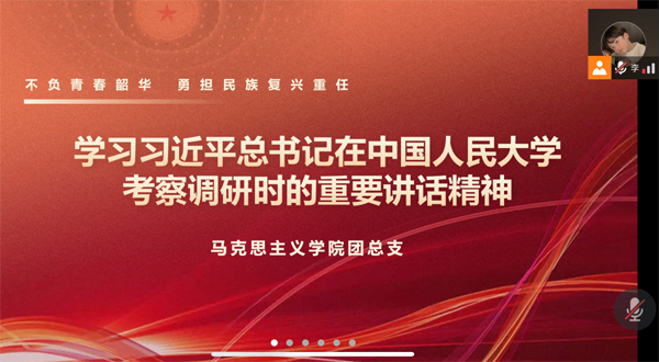 4月26日,best365官方网站登录入口团总支、研究生会、各年级团支部采用网络会议形式,学习热议总书记重要讲话精神。