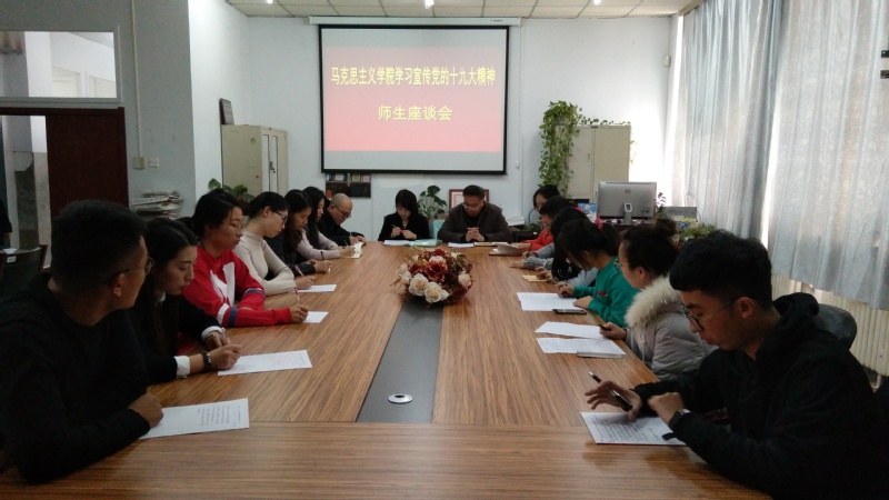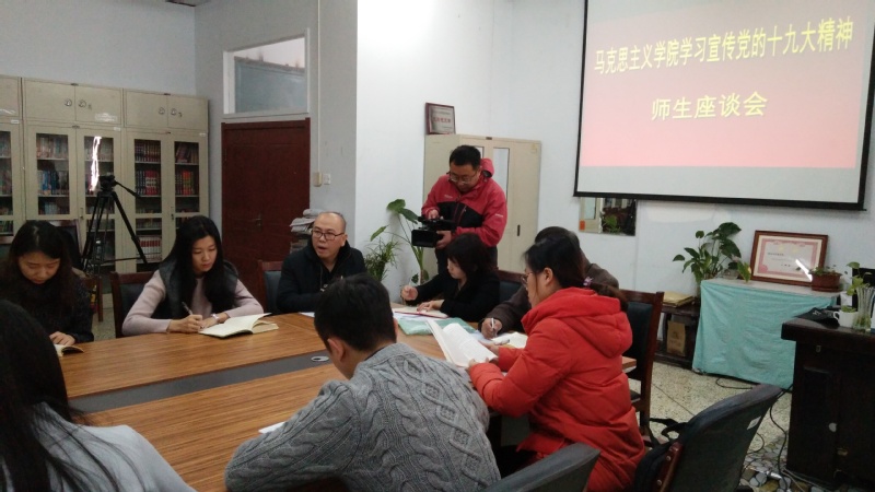 11月21日上午,best365官方网站登录入口在学院资料室举行学习宣传贯彻党的十九大精神师生座谈会。学院班子、部分教师及研究生代表参加座谈会,学院党总支书记朱兴国主持会议。