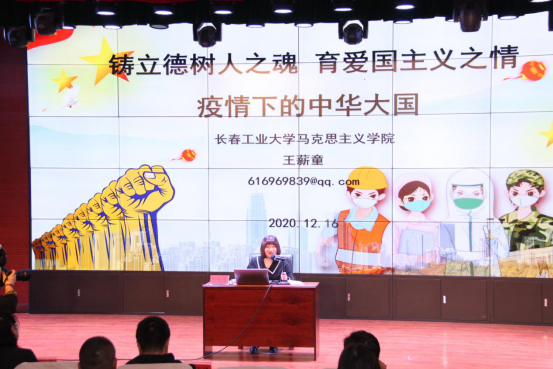 12月16日下午,毛泽东思想和中国特色社会主义理论体系概论教研室王薪童老师走进长春市第二中等专业学校,为300余名师生讲授了一堂以《疫情下的中华大国》为题的思政课。在45分钟的课程里,她通过PPT演示、数据分析、案例讲解、现场互动等形式,讲述了新冠肺炎疫情这场“大考”让14亿中国人民更加团结、更加爱国。疫情也让我们学会了感恩,懂得了责任与担当。本次课程受到师生广泛好评。
